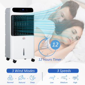 Keep your cool this summer with this air conditioner fan from HOMCOM. The portable air cooler comes with ice boxes so you can make the air colder and more refreshing. You can change between low, medium and high speeds and adjust between normal, natural and sleep mode to set it how you like. The timer function is useful for using at night time. The evaporative air cooler swings from left to right so it covers a larger area.