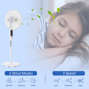 - Switches between low, medium and high speeds, as well as between sleep, natural and normal mode
