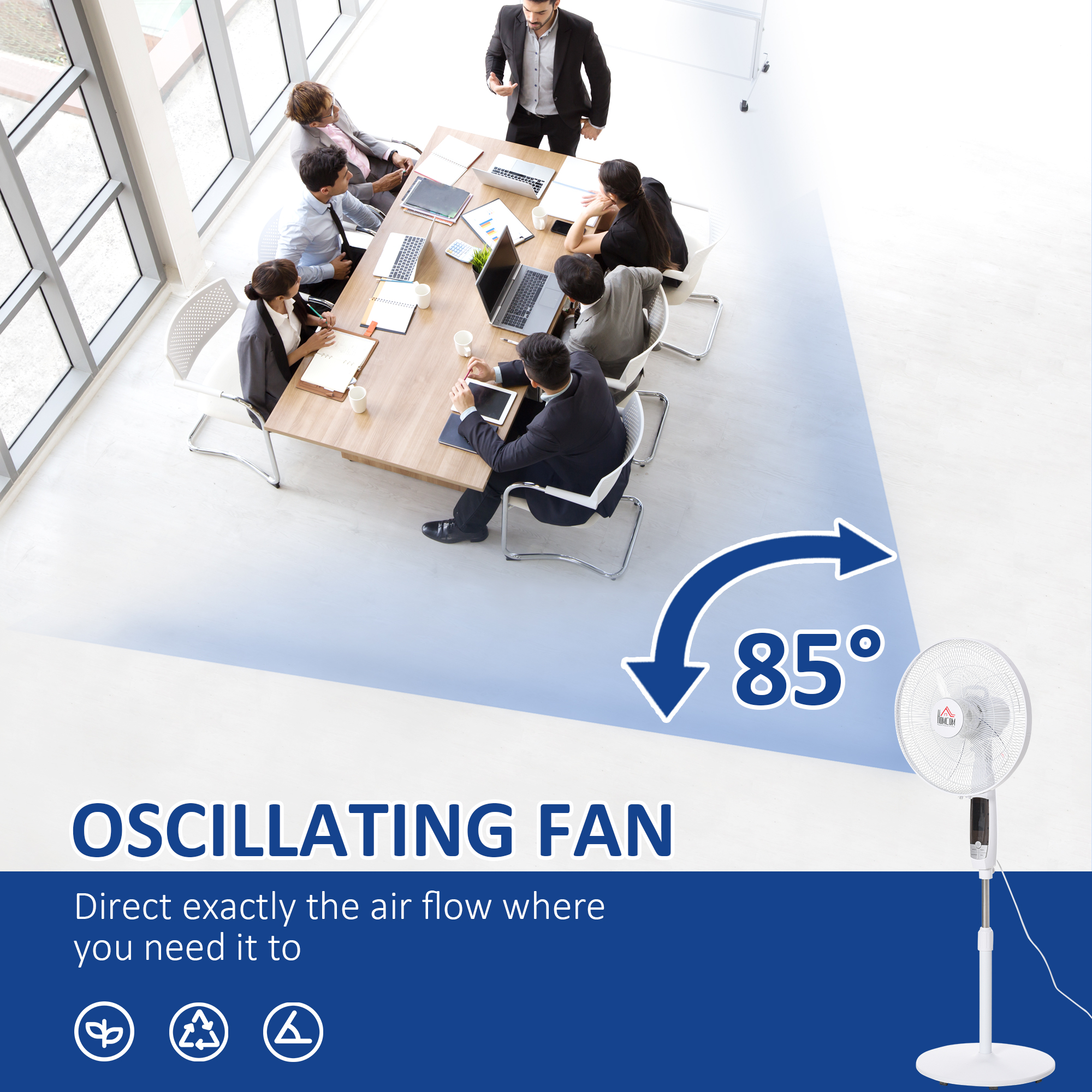 Stay comfortably cool during those hot summer afternoons and nights with this fan with remote control from HOMCOM. It is easy to use and perfect for home and office use. The tall fan features three variable speed settings and modes for personalised comfort. The 85?ø oscillation and 20cm adjustable range allow you to direct air to a specific point. A maximum 7.5 hour timer is perfect for night bedroom use. Fitted with an LED panel and comes with a remote for duo control.
