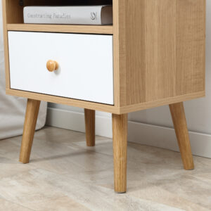 Keep your bedside storage simple and beautiful with this night stand from HOMCOM. Three-part storage, formed of the flat countertop, a shelf and drawer to keep what you need right next to you. Also suitable as a side table for the living room and office and more. Made from particle board for durability and reliability, the four legs are angled for balance. Complete with a handle on the drawer to open and close easily.