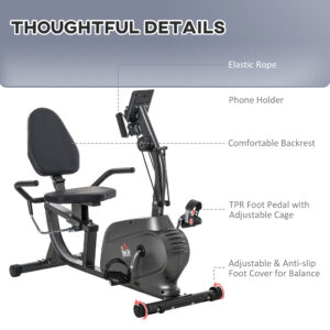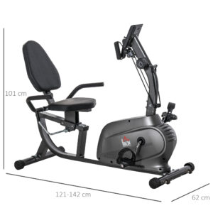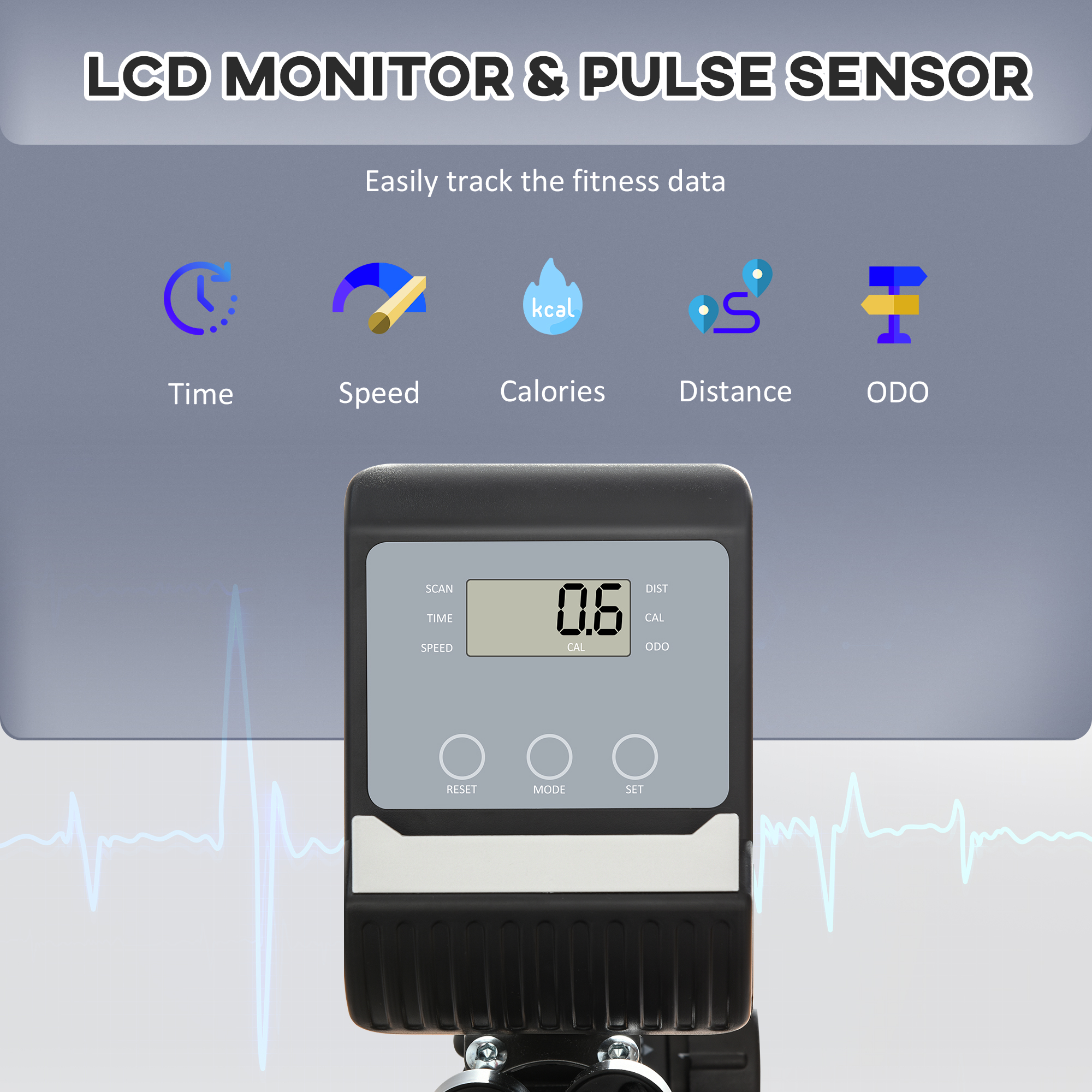 Exercise anywhere, even with no electricity around, thanks to this HOMCOM stationary fitness bike. Fitted with an LCD monitor, you can keep track of the time elapsed, speed, calories and distance achieved. The seat is adjustable and there are eight different resistance levels for a work out which is completely catered to you. A durable steel frame, this home bike trainer can support up to 110kg.
