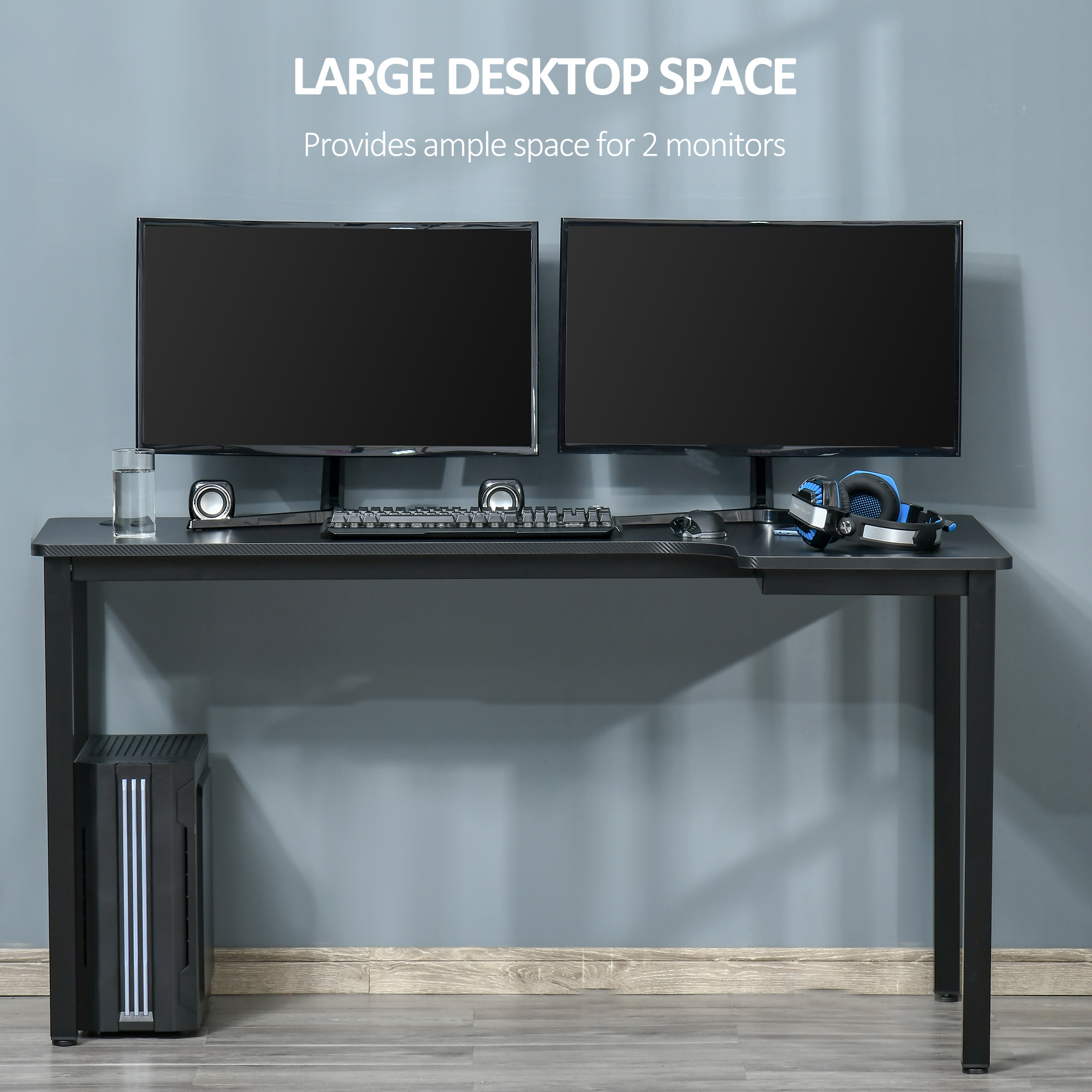 - Spacious: holds two screens, printer, keyboard, mouse and smaller items