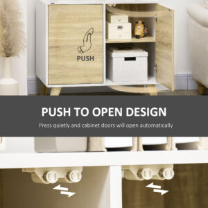 Embrace clutter-free style at home, thanks to this HOMCOM freestanding cabinet. Design comes with two push-open doors to access inside easily – as well as giving it a clean look with its no handles design. Open the doors and inside there are four compartments, which offers storage for keeping your space clean and tidy; adjustable shelves to change the area size easily. Complete with four angled legs for plenty of support.