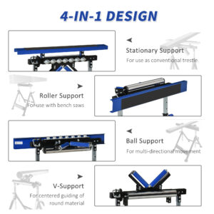 4-in-1 multifunction workbench provides a versatile solution for professionals and DIY enthusiasts. Rotary head offer different support: stationary support, roller support, ball support, V-support, meeting your various working needs. Height is adjustable and it can be folded for compact storage. Choose HOMCOM workbench, make your job easier.