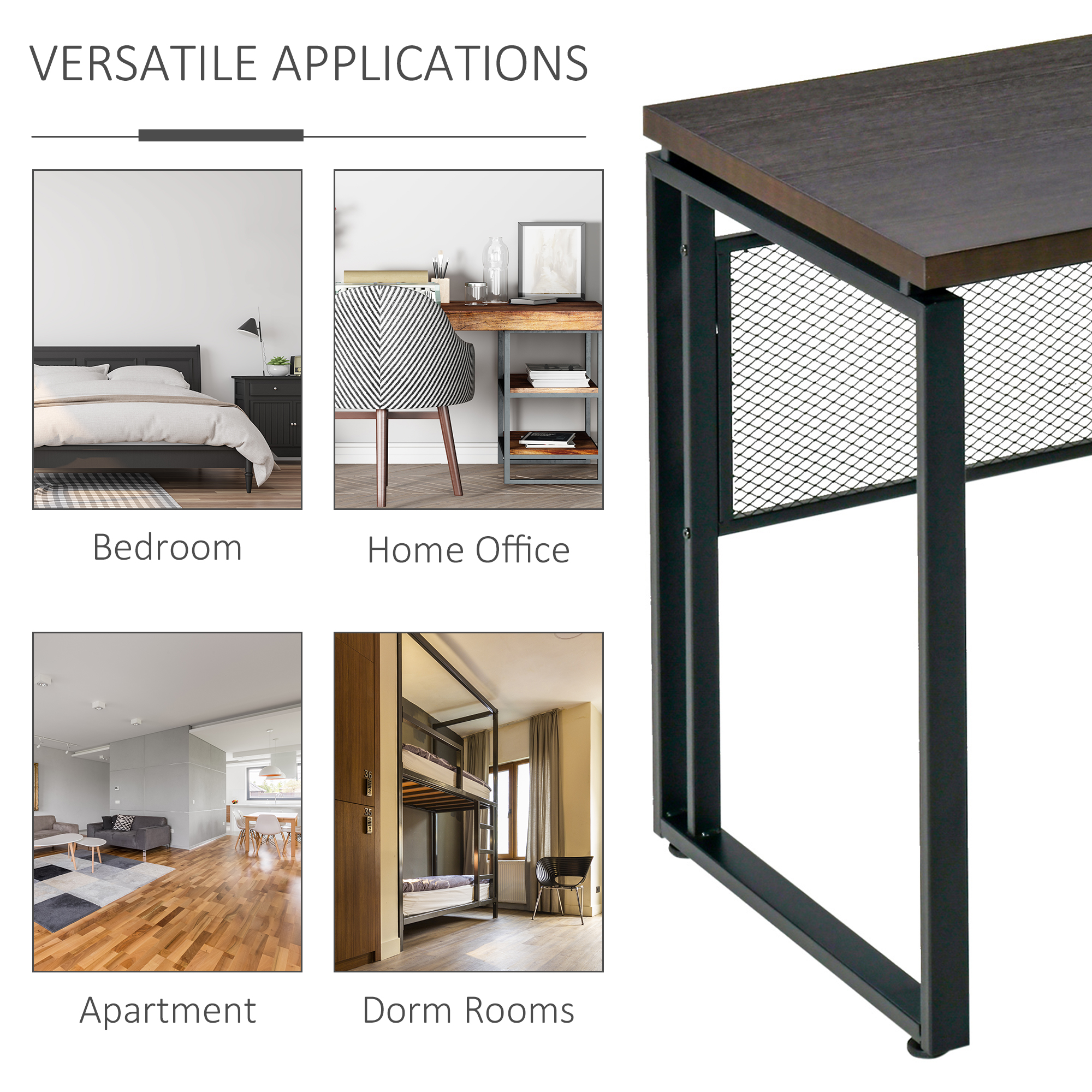 - Metal frame and particle board top for durability and easy cleaning