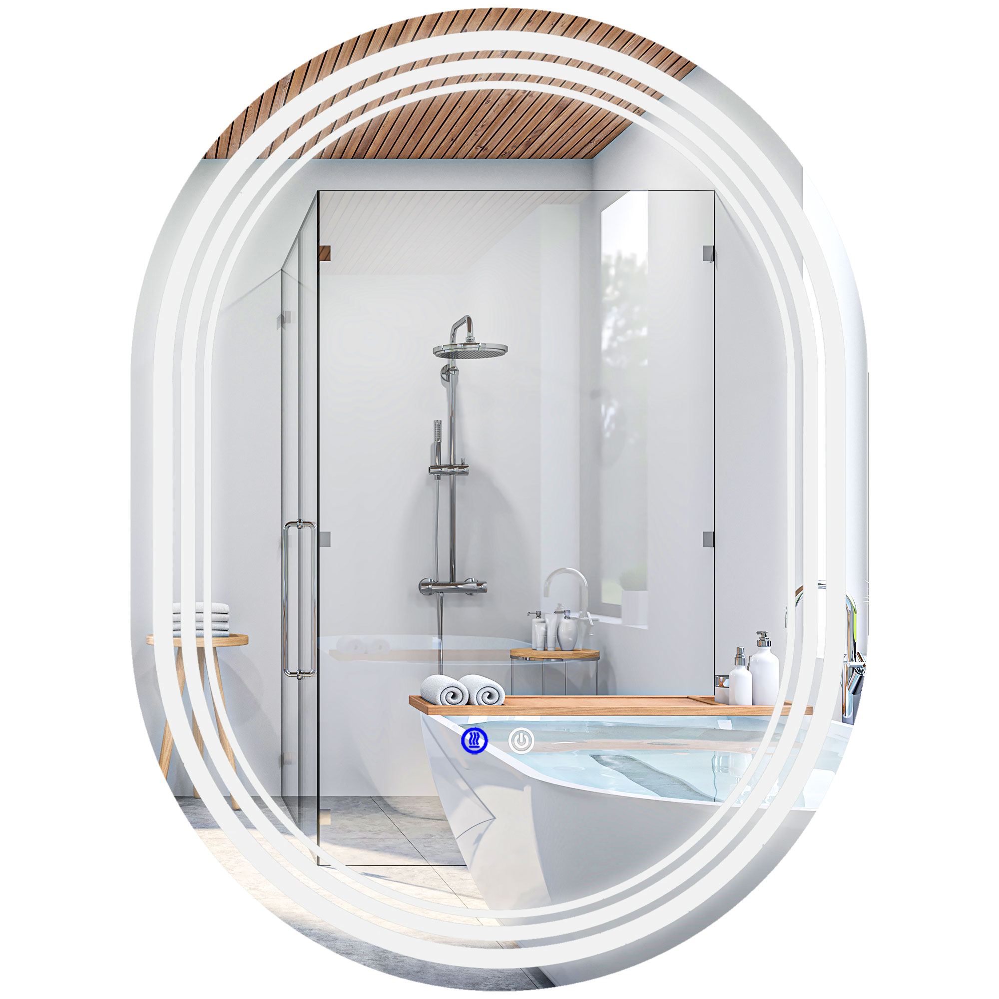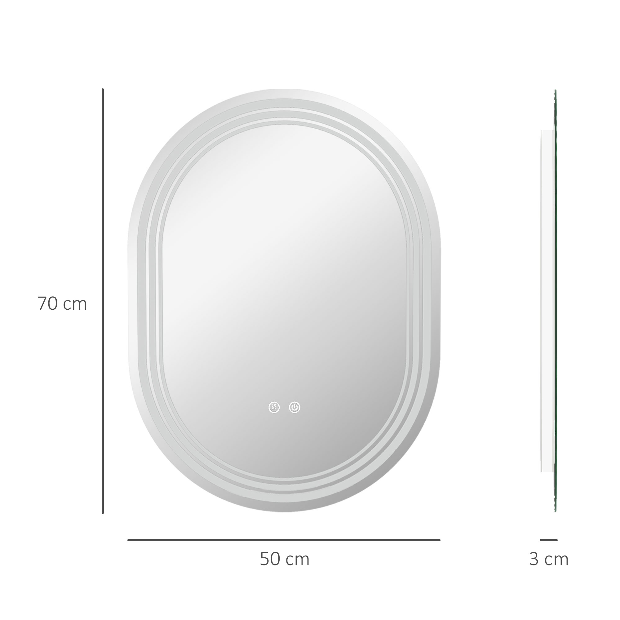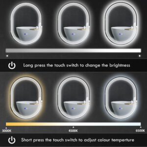 Not only a bathroom essential, but this kleankin LED mirror is a trendy piece for your everyday place of hygiene. A smoothly curved modern oval design, this is a modern design. The edge is fitted with an adjustable LED light – use the touch sensor to adjust the brightness and colour between warm white, white and cold white. The anti-fog function means the mirror doesn’t become steamy, so you can see your reflection in this makeup mirror, even straight out from the shower.