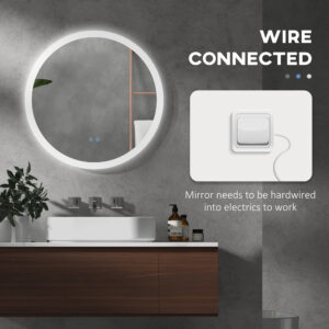 Running a bright ring around style, this kleankin bathroom led mirror is an excellent addition to your home. A clean and simple rounded shape, it comes with an outer LED light: choose between the warm white, white and cool colour and adjust the brightness to what you want – ideal for using both day and night. Controlled by a touch switch, it’s easy to use – also has handy memory function. Complete with the defog feature, so you can still use this mirror around steam and mist.