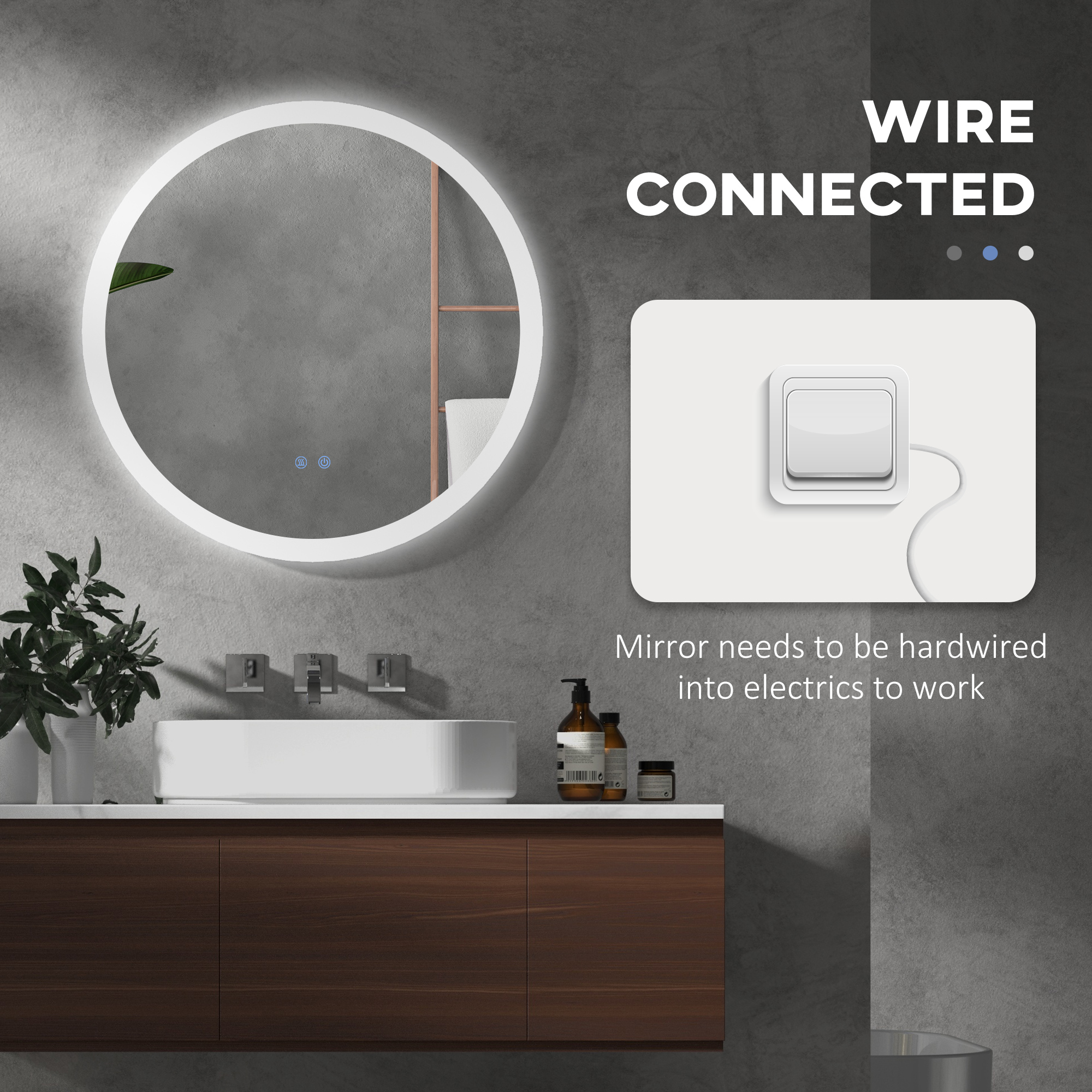Running a bright ring around style, this kleankin bathroom led mirror is an excellent addition to your home. A clean and simple rounded shape, it comes with an outer LED light: choose between the warm white, white and cool colour and adjust the brightness to what you want – ideal for using both day and night. Controlled by a touch switch, it’s easy to use – also has handy memory function. Complete with the defog feature, so you can still use this mirror around steam and mist.