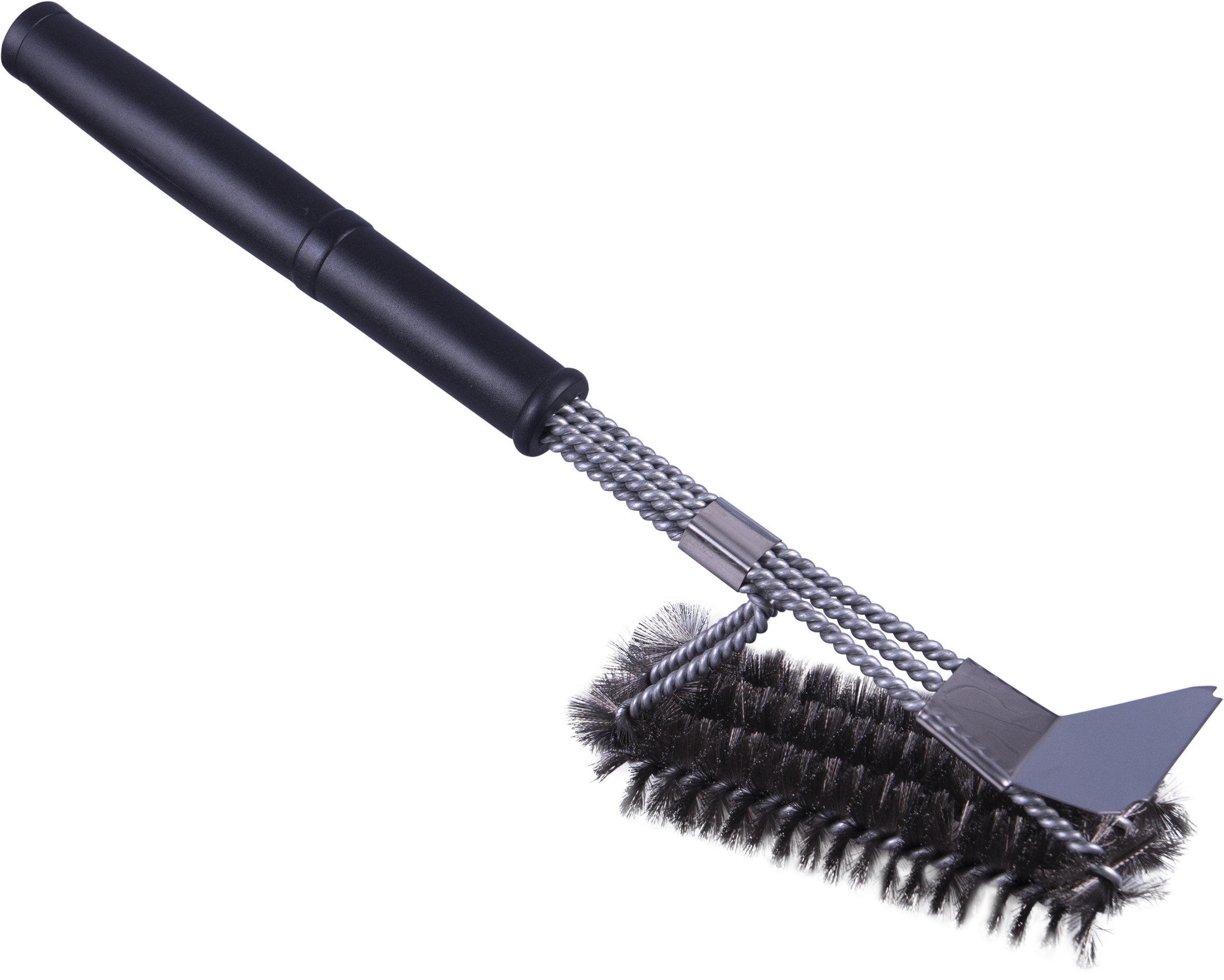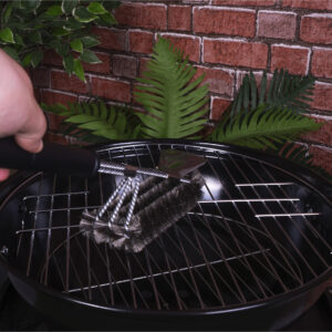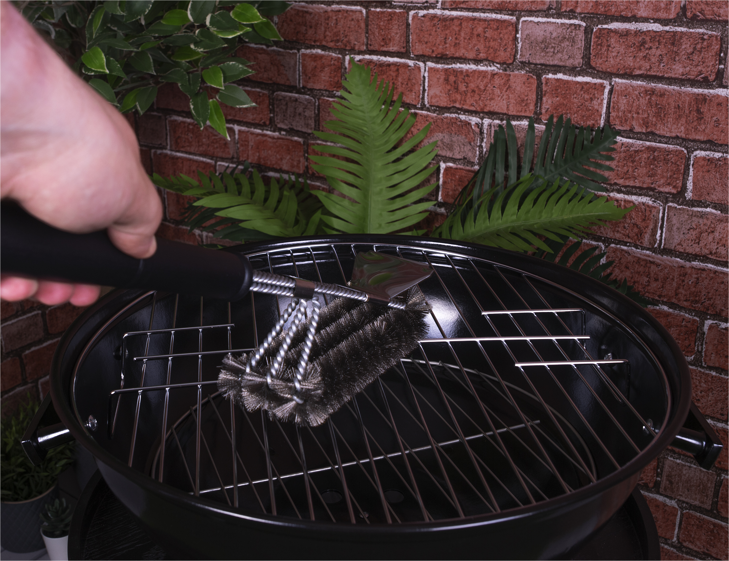 Drastically reduce the time it takes to clean your BBQ and minimise the chance of burns with the long handled cleaning brush and scraper. With 3 rows of heavy duty scrubbing bristles and a sharp scraper no job is too tough, even the hard to reach areas of your grill will sparkle. The extra long handle allows you to clean your BBQ effectively without any risk of injury. The metal bristles are firmly embedded into the brush meaning they will not fall out which is noted as a problem with other types of BBQ brush.Suitable for use on gas, charcoal or propane BBQ’s.