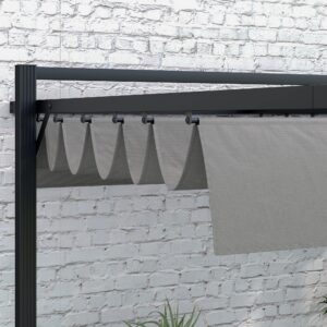 - Polyester pergola canopy is retractable, slides to a position to keep you protected from the sun