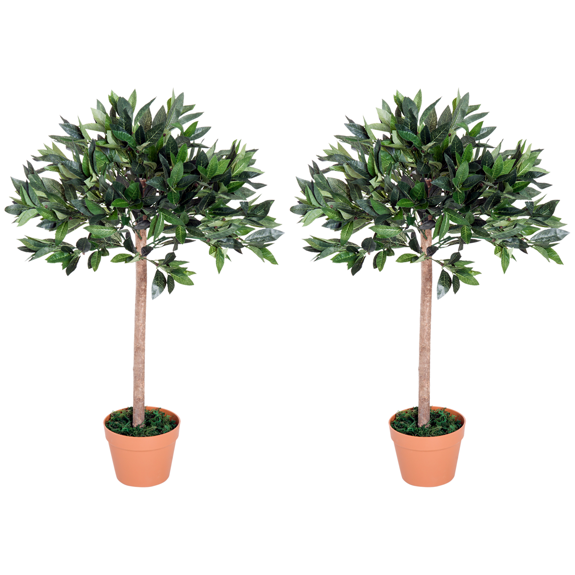 - Set of 2, comes with highly realistic foliage, moss and solid wood trunk