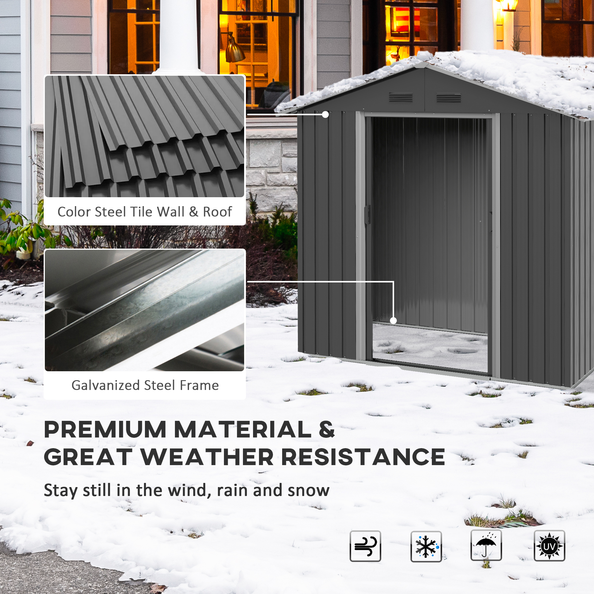 - Steel tile roof and walls, rust-resistant and rain-proof