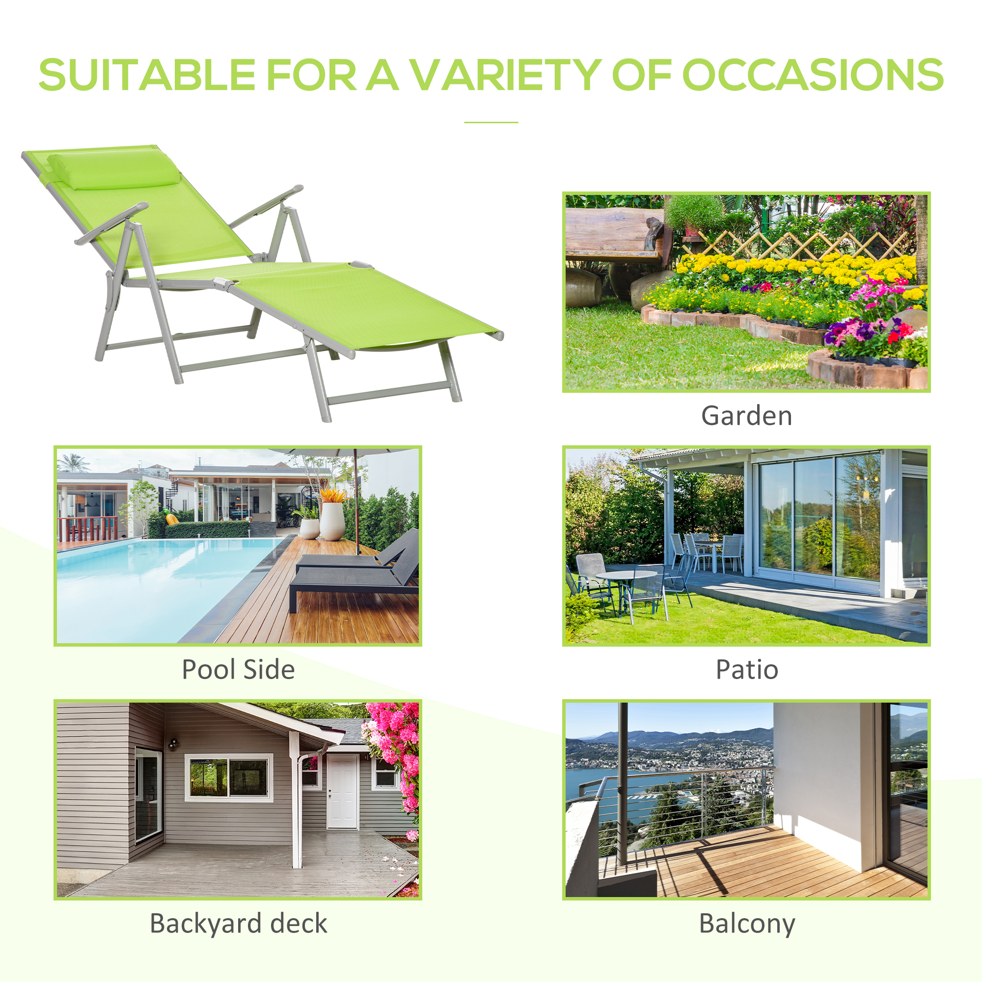 Relax easily all day long – thanks to this Outsunny garden lounger. The seven-level adjustable back means you can rest back to a position you want: whether shutting eye, reading a book or catching up with a friend. The metal frame is strong, with three long base legs for balance, wrapped in fabric to hold your body with full support. The removable top pillow keeps your head comfortable. When you’ve finished using it, this garden sun lounger is easy to fold up, carry and store.