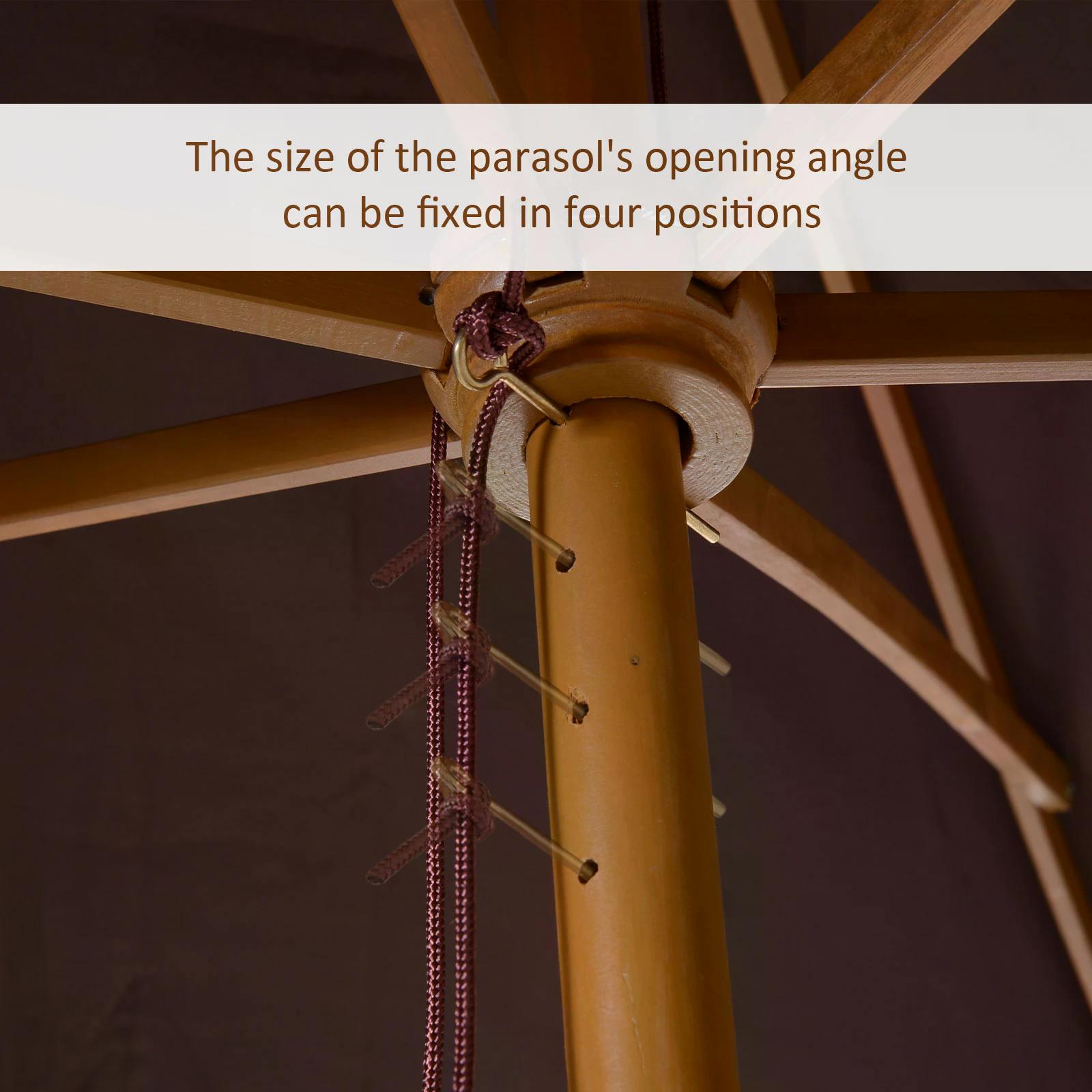 Stylishly make the most of the sun outdoors with this large garden umbrella from Outsunny. Built from wood, the main pole is extremely strong and stable and has been built to last for years to come. Made from 180g/?? polyester, the canopy will protect you from sunlight, UV and light rain, making it ideal for sitting out all day long. It’s the ideal blend of beauty and functionality.
