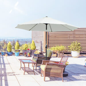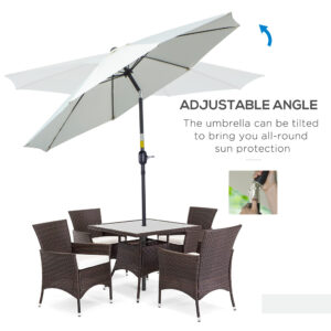 Summer shades the classic way – this Outsunny sun parasol. An aluminium frame makes the core structure strong, with 8 additional ribs connecting to the canopy for extra support. The ??2.65m canopy protects you from direct sunlight and light showers – the outdoor parasol’s large size creates cover for you and five other guests. The canopy can be easily tilted to keep you protected in different ways. And to complete, pair with an Outsunny base, heavier than 25kg.