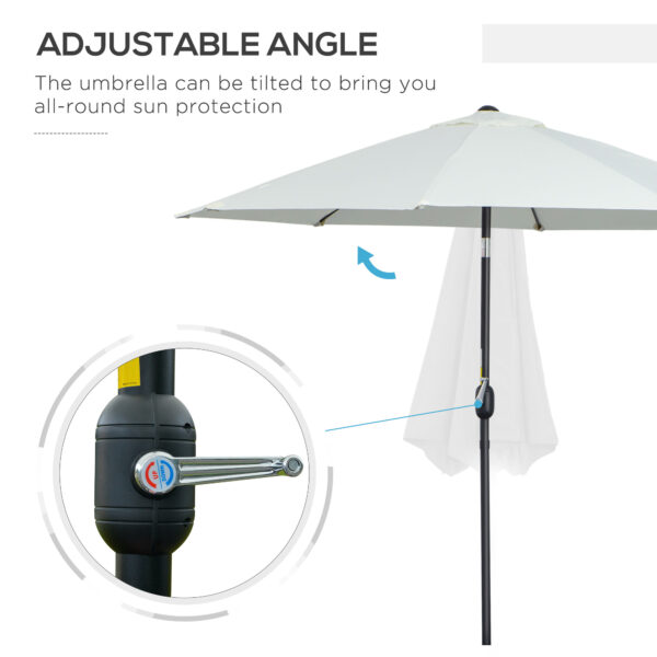 Summer shades the classic way – this Outsunny sun parasol. An aluminium frame makes the core structure strong, with 8 additional ribs connecting to the canopy for extra support. The ??2.65m canopy protects you from direct sunlight and light showers – the outdoor parasol’s large size creates cover for you and five other guests. The canopy can be easily tilted to keep you protected in different ways. And to complete, pair with an Outsunny base, heavier than 25kg.