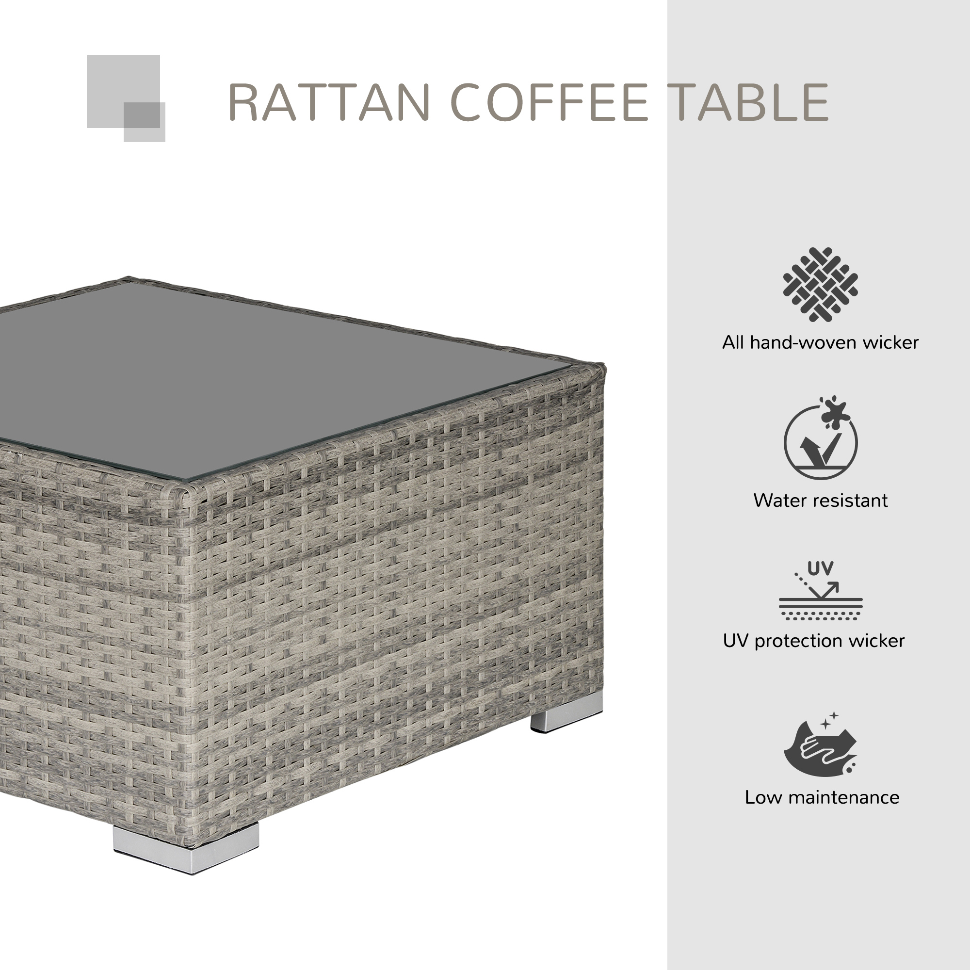 This forever on-trend square table, from Outsunny, will bring an effortlessly elegant touch to your garden and outdoors. The steel frame ensures a solid structure, wrapped PE wicker so extra durable and resistant to mild weather damage. It’s fitted with a tempered glass table top, giving you a safe holding spot which can be wiped clean easily. It’s finished with foot pads for floor protection.