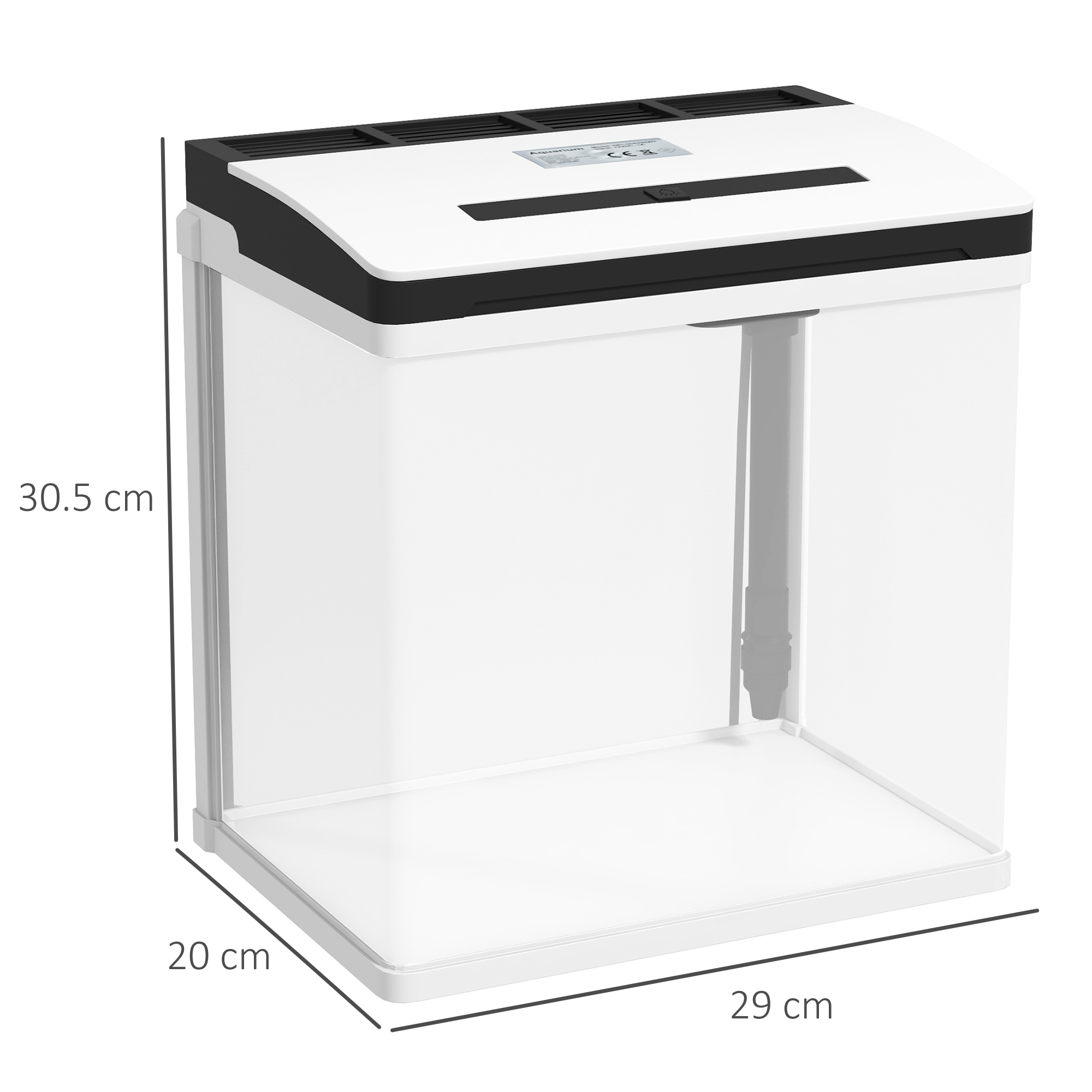 Create an aquatic oasis with our wonderful PawHut fish tank. The new centrepiece in your home, it has LED lighting with three modes, so you can get the mood just right. Its self-cleaning system keeps the tank hygienic, whilst the water pump lets fish breath and thrive. They’ll swim freely around the 13L tank ?? and you’ll easily watch through the crystal-clear HD glass. Bring a sense of calm and tranquility into your life; a captivating fish tank that sets your room apart from the rest.