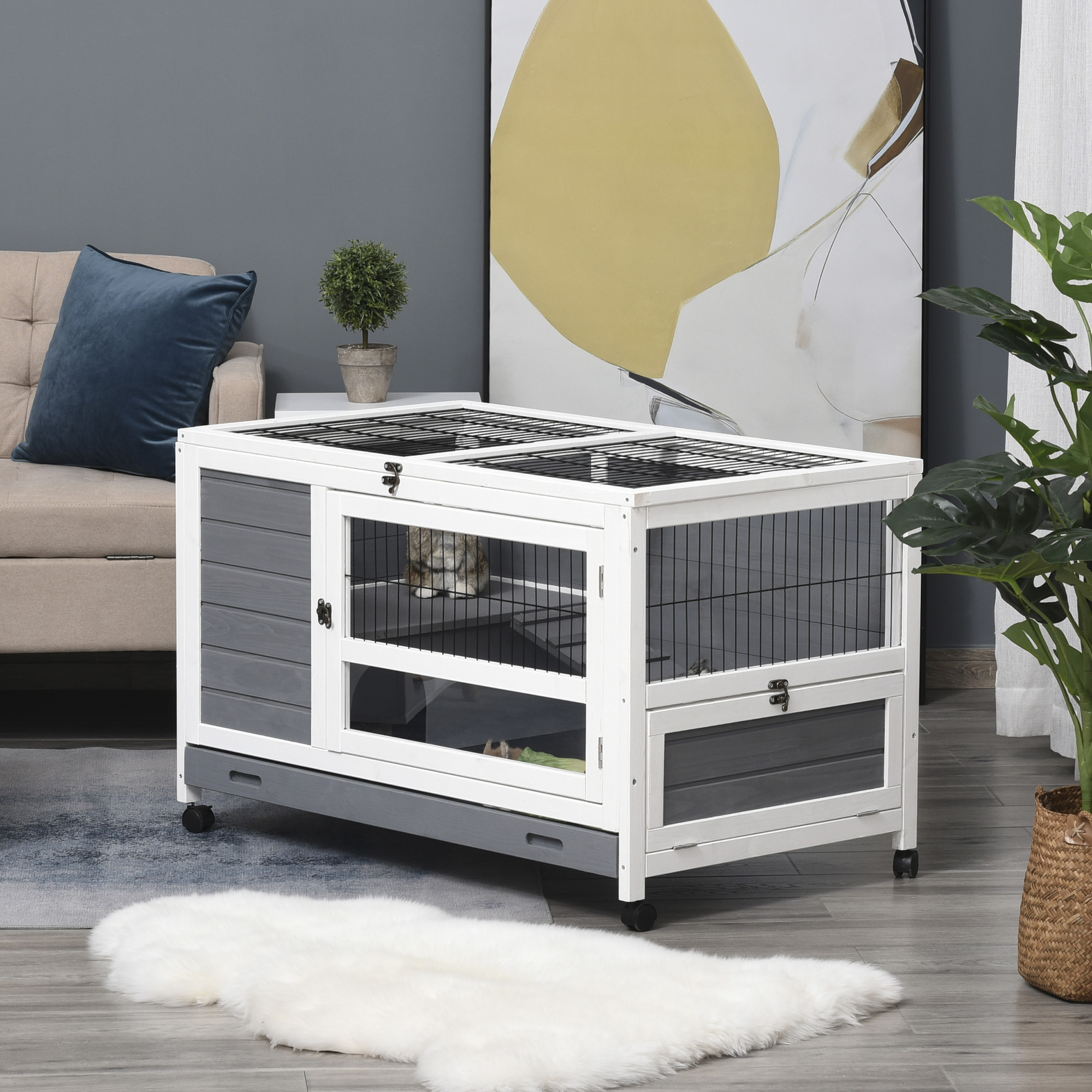 This small indoor rabbit house from PawHut is perfect for rabbits, guinea pigs and other small animals. It’s made from fir wood and coated with water-based paint for protection against light everyday wear. There are four wheels with brakes to move it quickly. There’s a main house for them to move around, alongside a small enclosed room to give them privacy. Two locking doors, a roof which opens and closes easily and a pull-out tray makes it easy to access and clean inside.