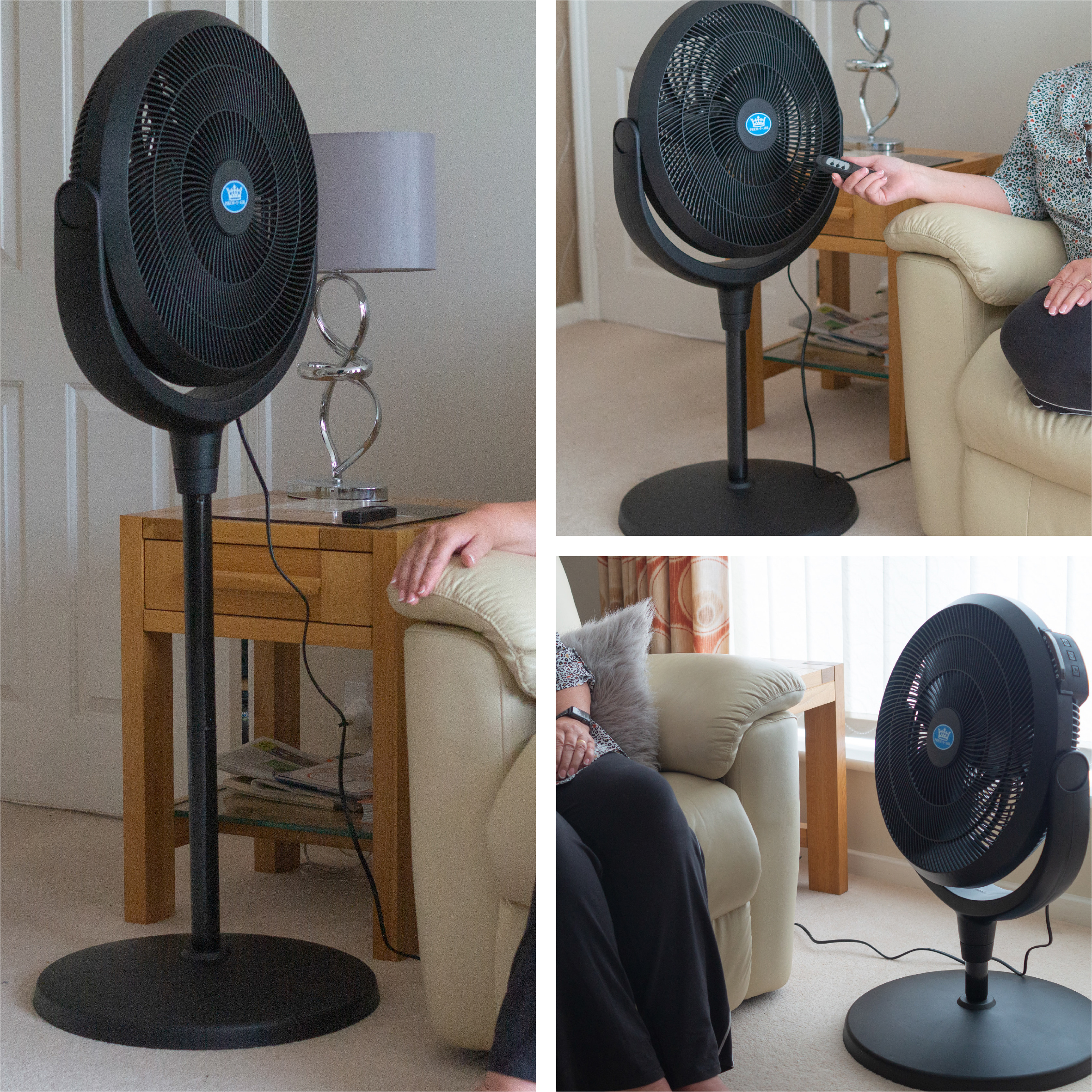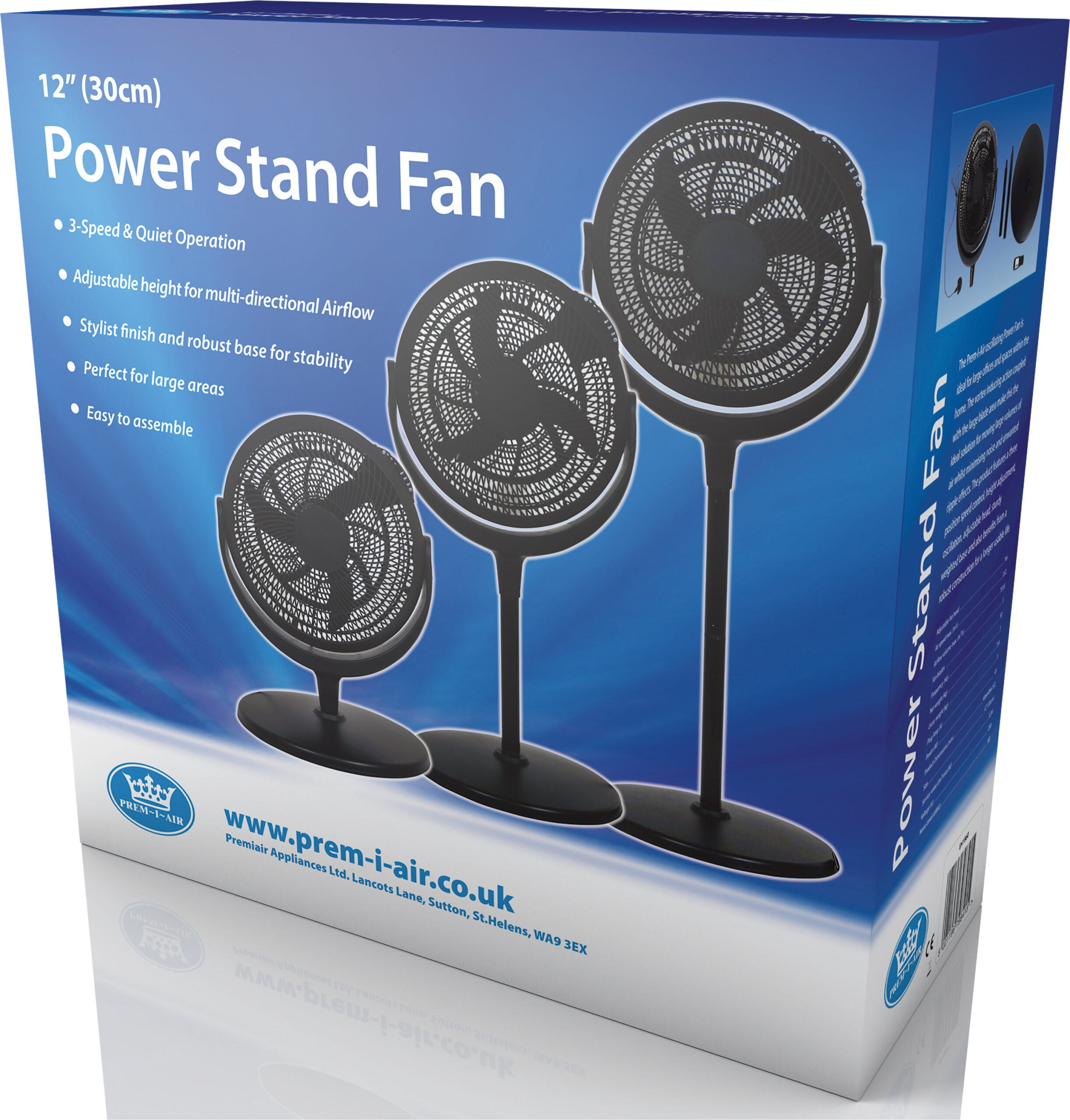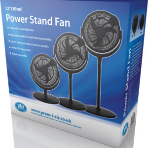 The Prem-I-Air 12Inch Fan is powerful enough to cool large offices and spaces within the home. The vortex inducing action coupled with the large blade area make this the ideal solution for moving large volumes of air whilst minimising noise and unwanted ripple effects. The product features a three position speed control, height adjustment, adjustable head, sturdy weighted base and also benefits from a robust construction for a longer usable life. The fan has a handy 7 hour timer and has the benefit of a remote control for your convenience. This fan is extremely versatile as due to it s height adjustment it can be used as either a desktop or floor fan.