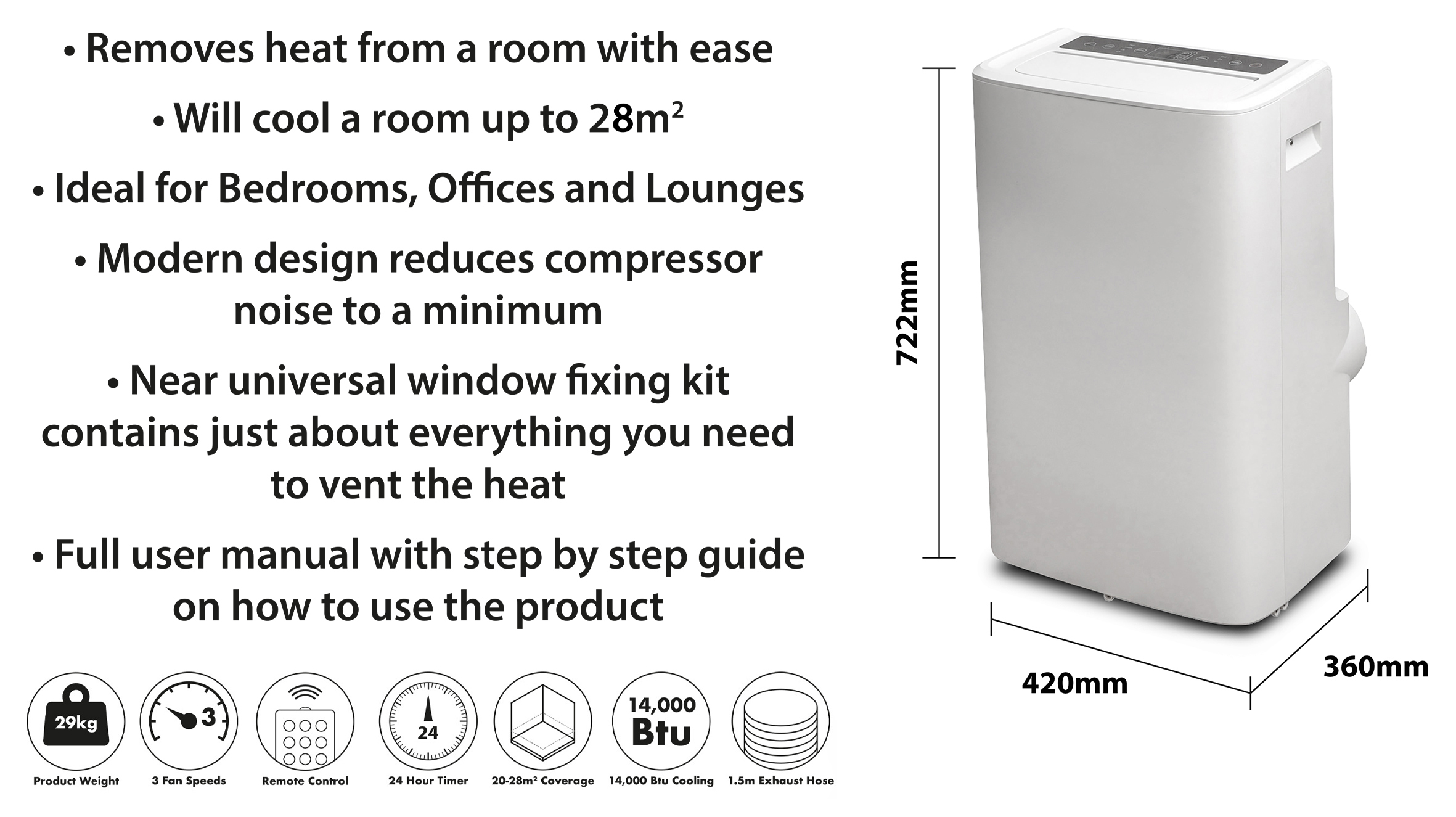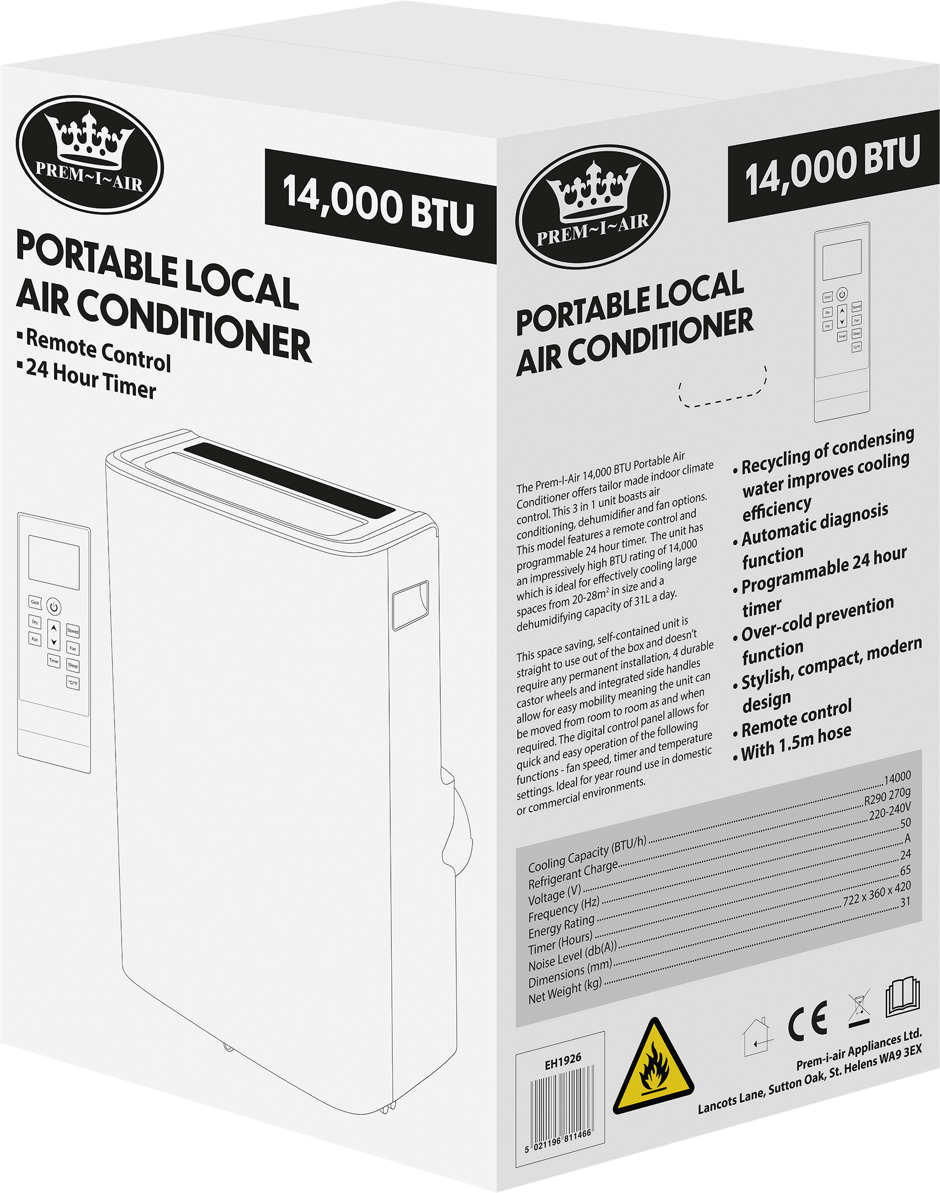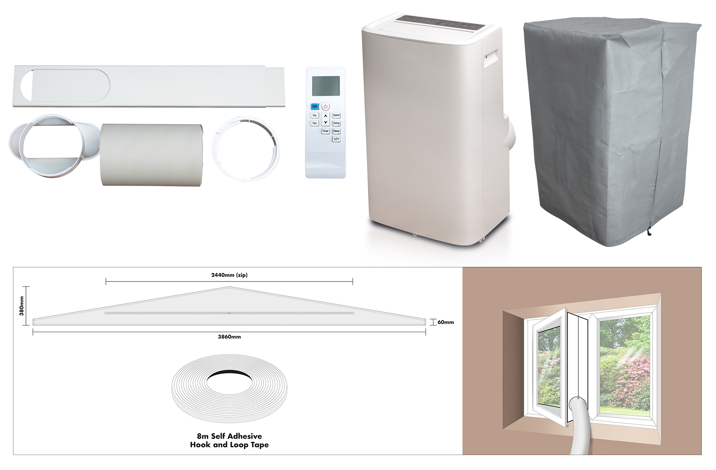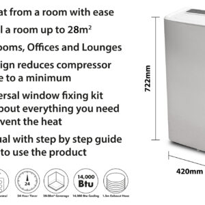 Prem-I-Air 14,000 BTU Portable Local Air Conditioner With Remote Control and Universal Window Fixing Kit and Dust Cover.
