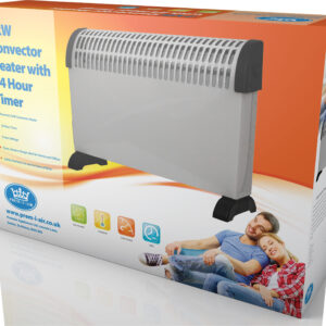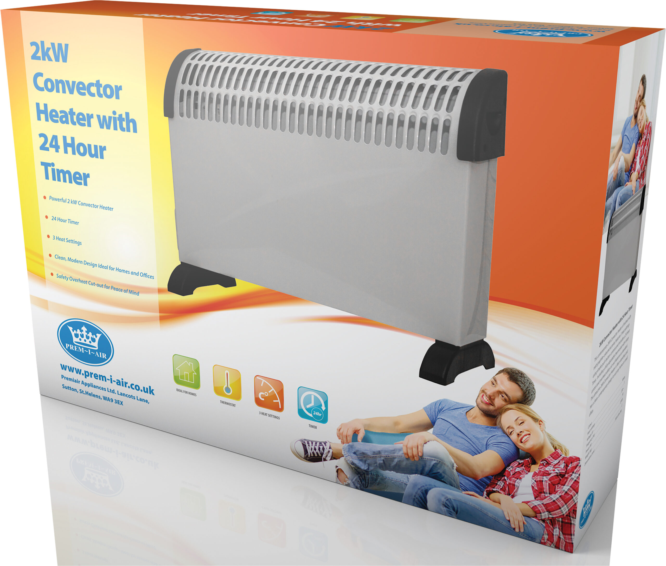 This contemporary 2kW Convector heater from Prem-I-Air is finished with matt graphite-coloured accents, it features 3 heat settings using simple push button controls and includes a 24 Hour Timer .The heater has a fully adjustable thermostat with rotary control and overheat safety cut-out feature as standard. This attractive 2kW Convector Heater is floor-standing and has a clean, contemporary design to suit any home or small office. This product is only suitable for well insulated spaces or occasional use.