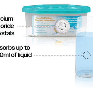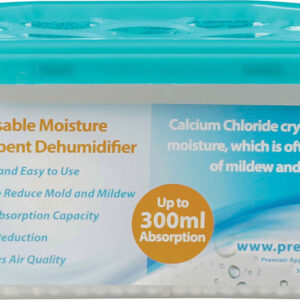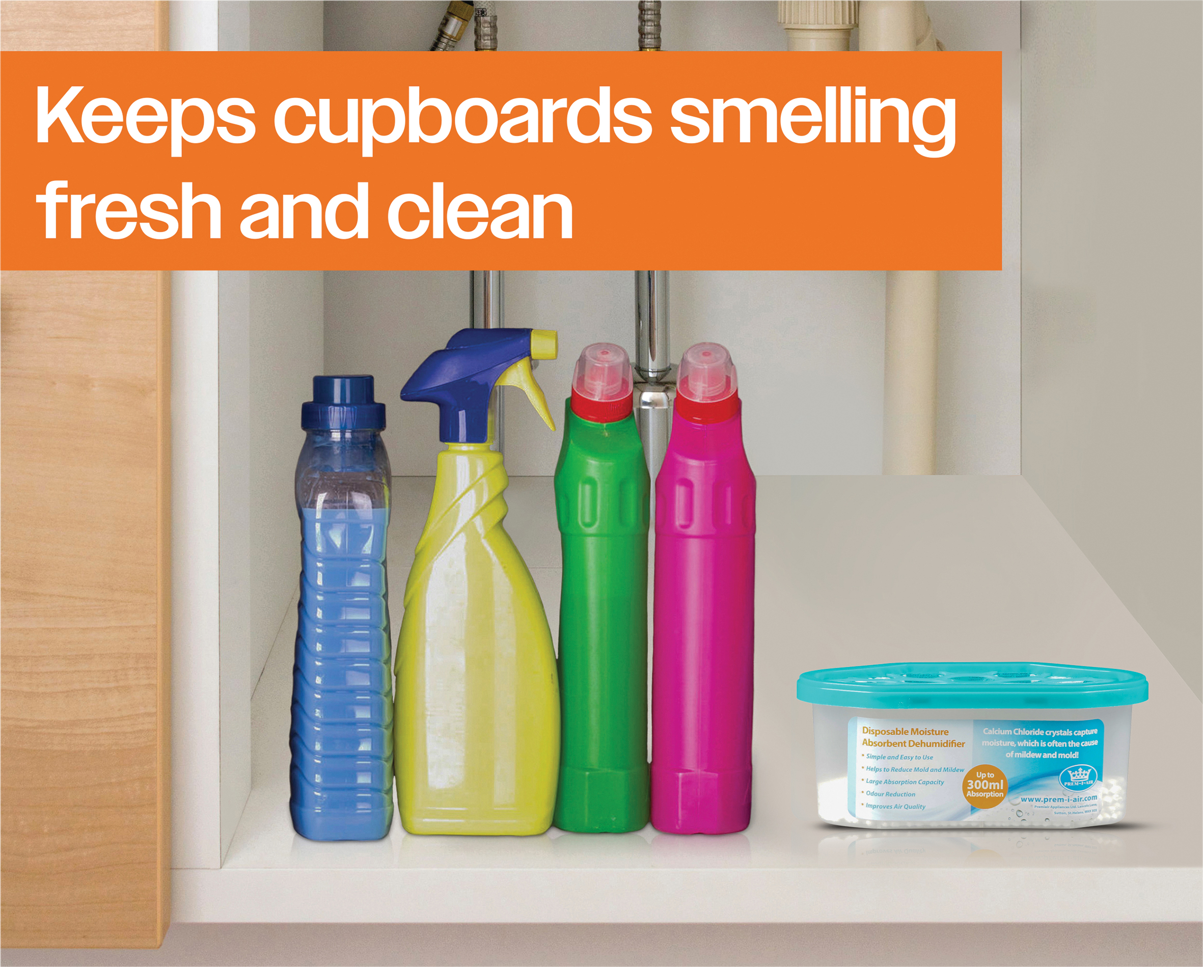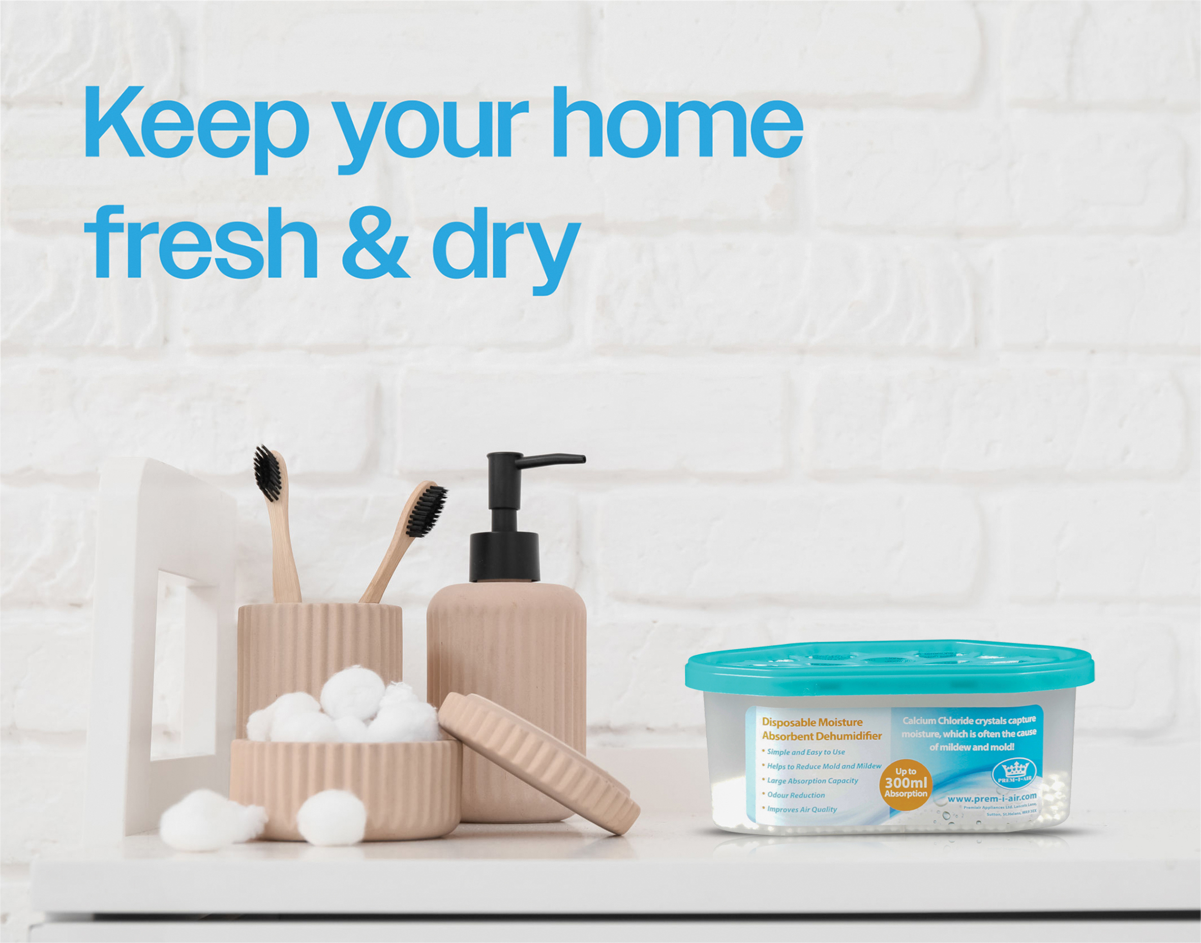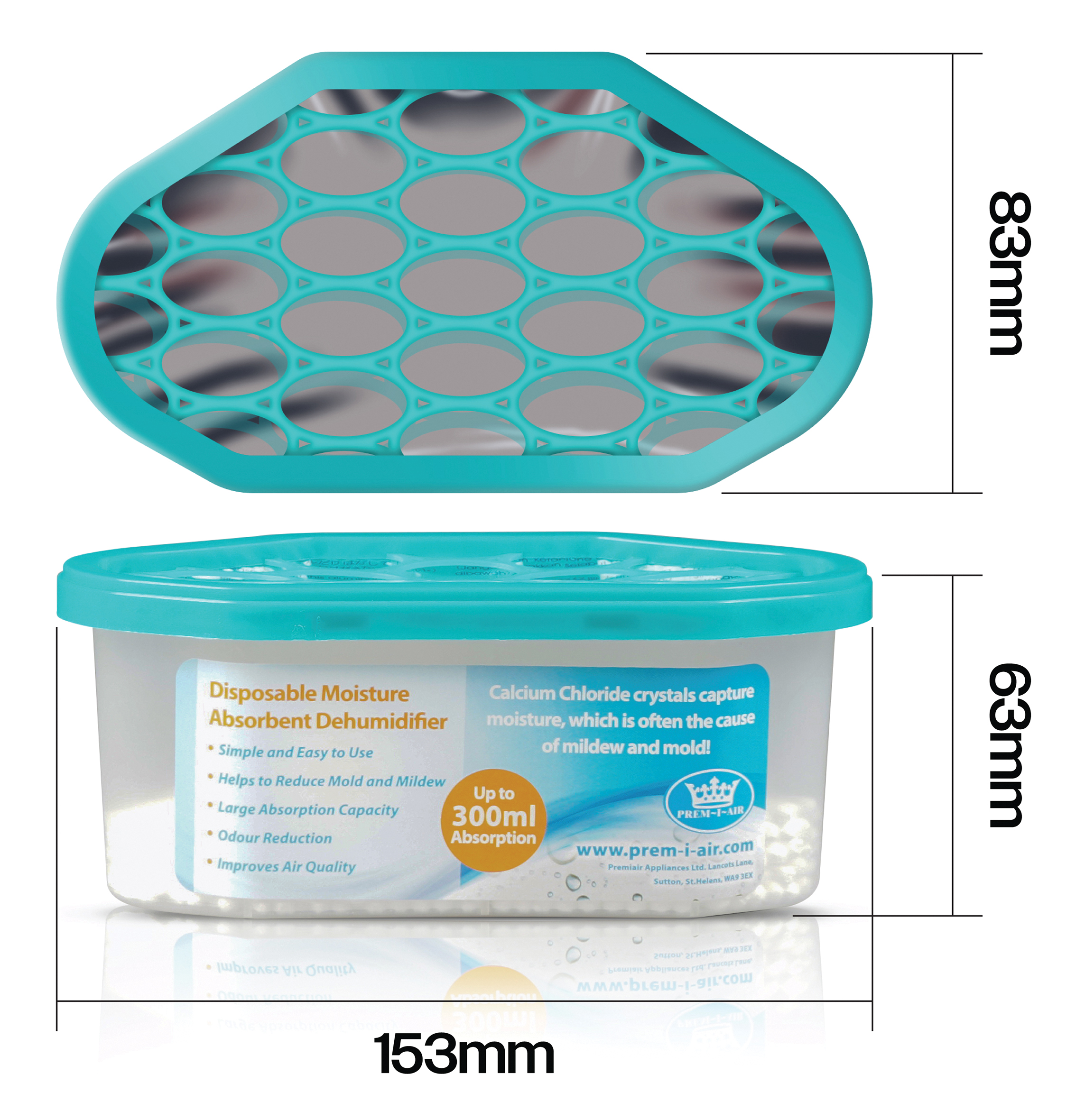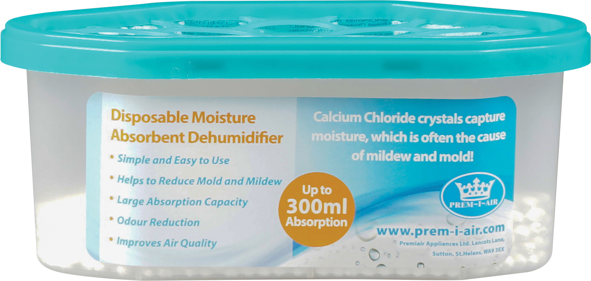 The Prem-I-Air Disposable Moisture Absorbent Dehumidifiers are the ideal products to help reduce damp, mould & mildew which can appear due to moisture in the air. These products are designed to be a cost effective, noise free and safe way to remove and control damp. The disposable dehumidifier is available in various sizes, they are supplied in plastic containers and are suitable for use in both small places such as wardrobes and also larger areas such as caravans, garages, boats and sheds. The dehumidifiers have to be replaced when all of the contents have turned to liquid.