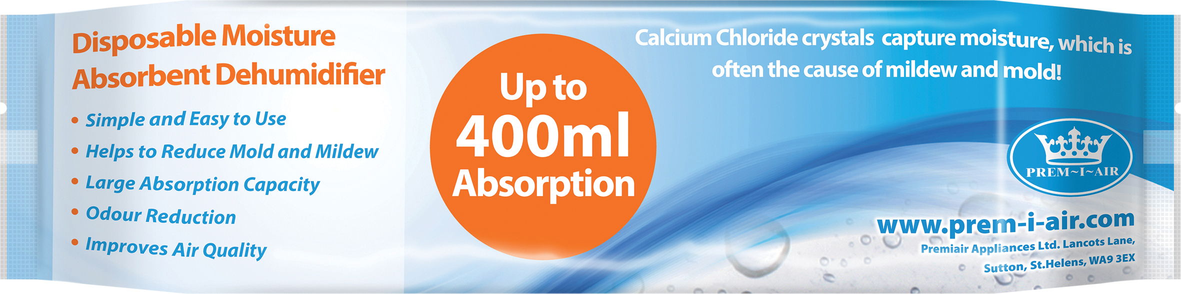 The Prem-I-Air Disposable Moisture Absorbent Dehumidifiers are the ideal products to help reduce damp, mould & mildew which can appear due to moisture in the air. These products are designed to be a cost effective, noise free and safe way to remove and control damp. The disposable dehumidifier is available in various sizes, they are supplied in plastic containers and are suitable for use in both small places such as wardrobes and also larger areas such as caravans, garages, boats and sheds. The dehumidifiers have to be replaced when all of the contents have turned to liquid.