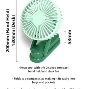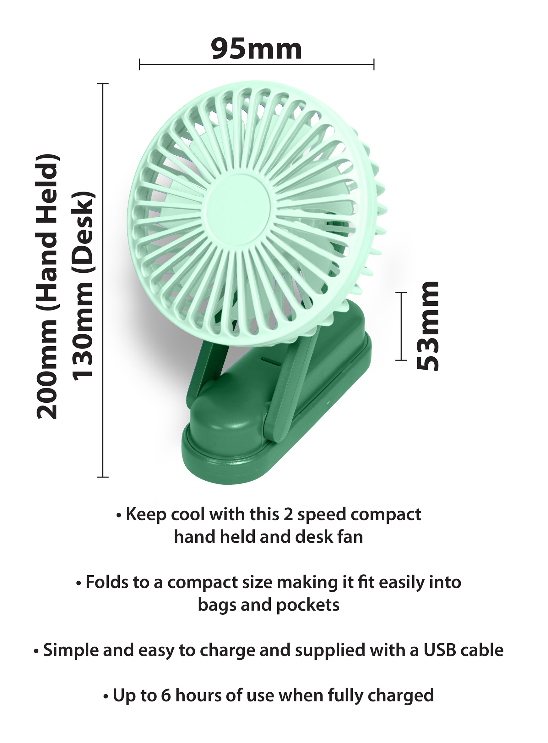 - COOLING: Keep cool with this 2 speed compact hand held and desk fan