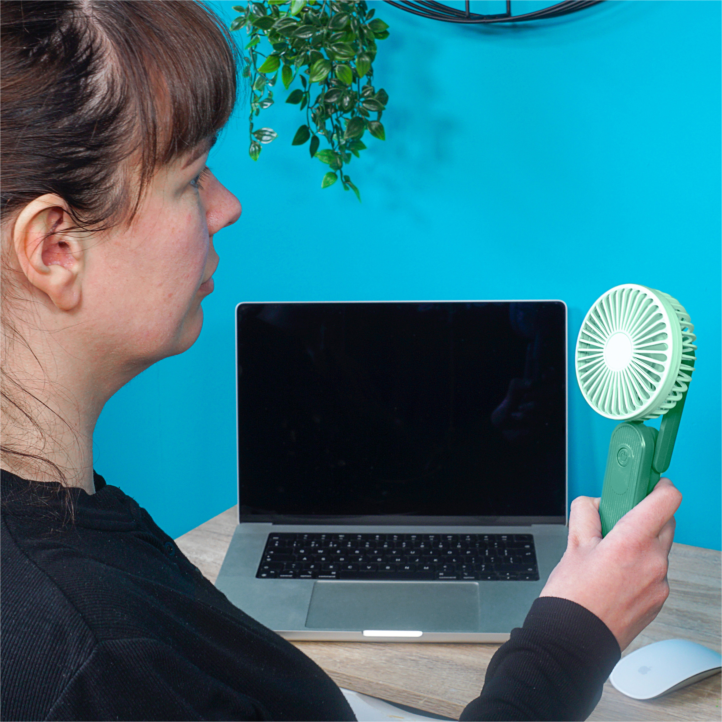 The Prem-I-Air Mini USB Rechargeable Hand and Desk cooling Fan with three speeds is the perfect solution for keeping cool and comfortable wherever you go. Whether you’re sitting at your desk or enjoying the outdoors on a hot day, this portable fan is designed to provide a refreshing breeze to help you stay cool and relaxed. This compact fan is easy to carry and comes with a USB cable for convenient charging. The rechargeable battery allows you to use the fan for up to 3 hours on a single charge, making it perfect for use on-the-go. It is also designed with a foldable handle, making it easy to hold in your hand or place on your desk. With three adjustable speed settings, you can choose the right level of cooling that suits your needs. The fan has a powerful motor that produces a strong and consistent breeze, ensuring that you stay comfortable throughout the day.