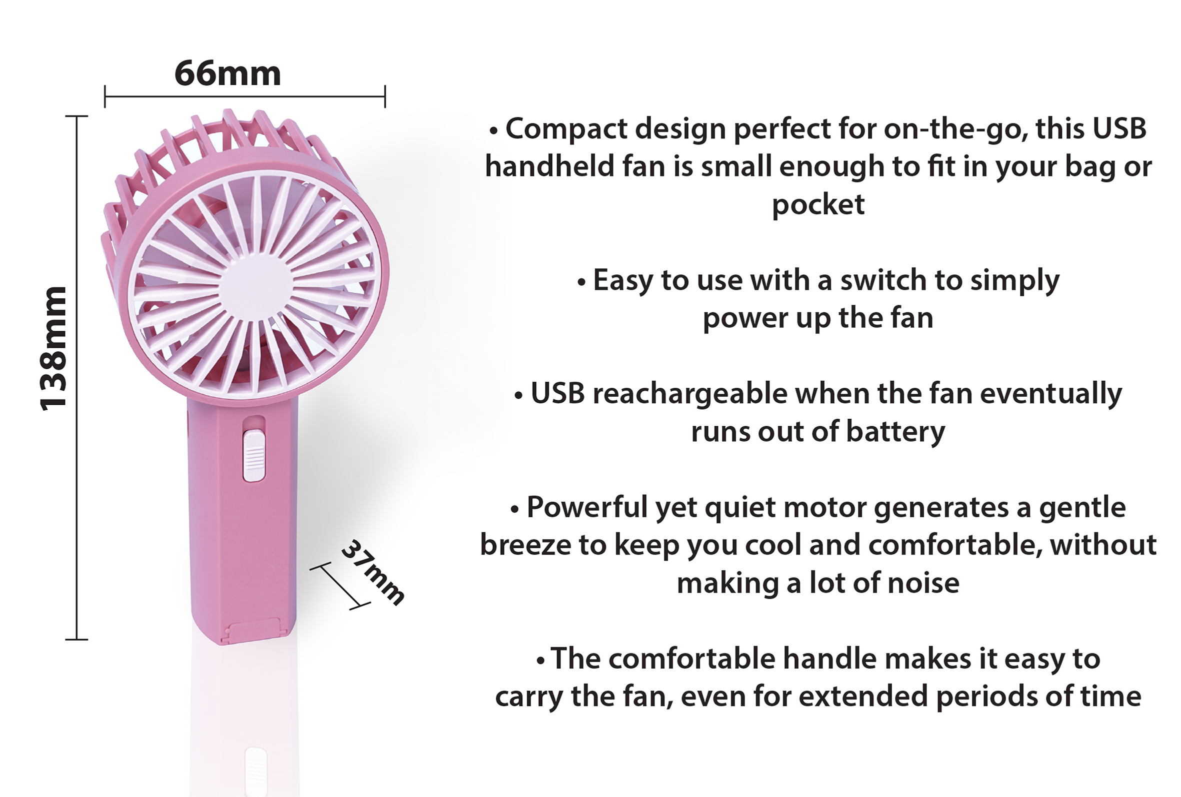 - PORTALE: Compact design: Perfect for on-the-go use, this USB Handheld Fan is small enough to fit in your bag or pocket.