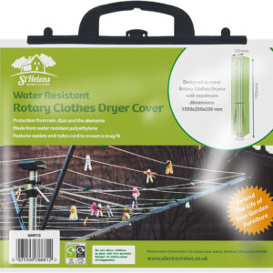 The Rotary Clothes Dryer cover from St Helens Home and Garden is the ideal way to protect your rotary clothes dryer from the elements in the winter months. Supplied in a green, water resistant polyethylene the product features eyelets and nylon cord to ensure a snug fit.