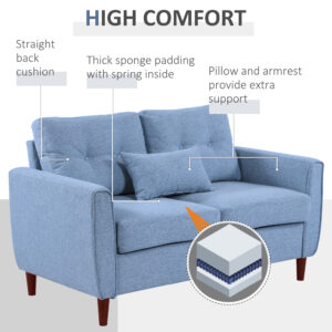 Living room comfort has never been so inviting. Bring this 2 seater sofa into your home and make it your number one spot for film nights, book times and relaxing with your family. The 140 cm wide design means there’s plenty of room for you and someone else – or extra space for just you. The small couch comes with thick padded cushions on the back and seat, with linen upholstery which is smooth against the skin. The solid eucalyptus frame is strong and durable for lasting use in your space.
