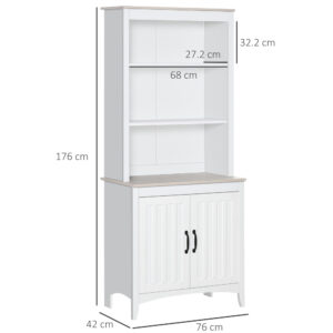 Need some more storage options in the kitchen? This kitchen cupboard is here to help! Featuring a clean-lined design with neutral colour, this contemporary design cabinet brings an updated touch to your homey aesthetic, while its 3-tier shelving and double door cabinet offer up effortless storage for all your odds and ends. A spacious counter top provides lots of space for holding a microwave oven. Add stylish storage and reduce visible clutter with our beautiful pantry cabinet from HOMCOM.