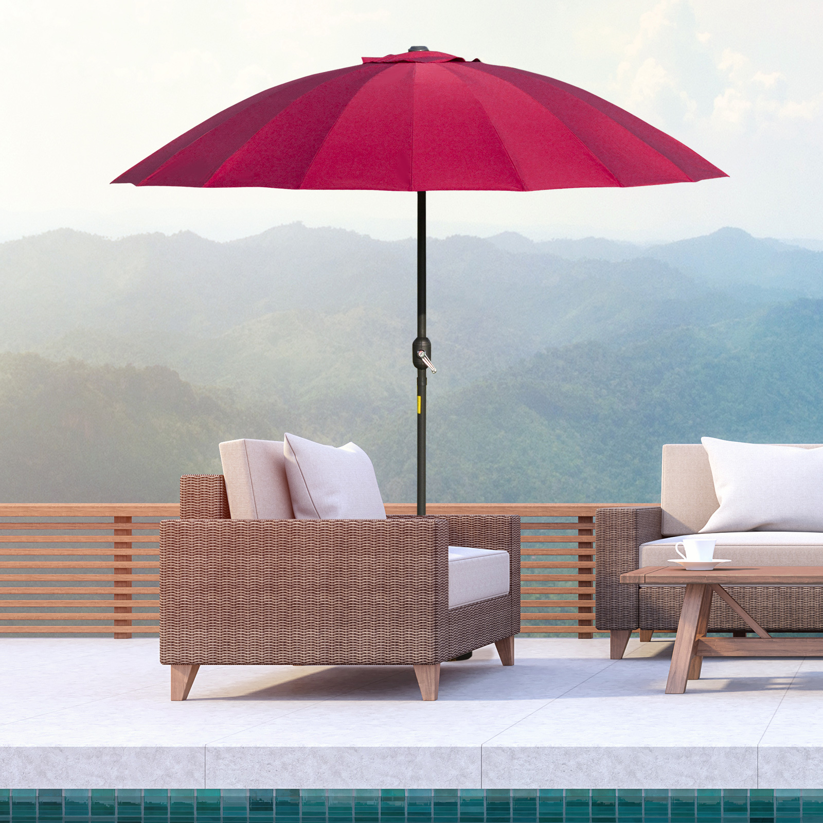 Keep yourself protected with the large garden umbrella from Outsunny. With a large polyester canopy, the balcony parasol offers plenty of shade underneath. The outdoor parasol is connected to a tough metal frame with 18 fibreglass ribs. Sunshades for garden with crank handle and tilt, which opens and closes the canopy smoothly and easily. Please note, that a base is not included.