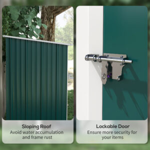 Add storage space to your outdoor areas, instantly: welcome this Outsunny garden shed into your home. Made from galvanised steel, in a corrugated finish, this is a sturdy piece which protects inside contents. It’s completely open inside, so you can store plenty – or even add your own shelving for organisation. A single door for access, fitted with a latch to keep it shut in place.