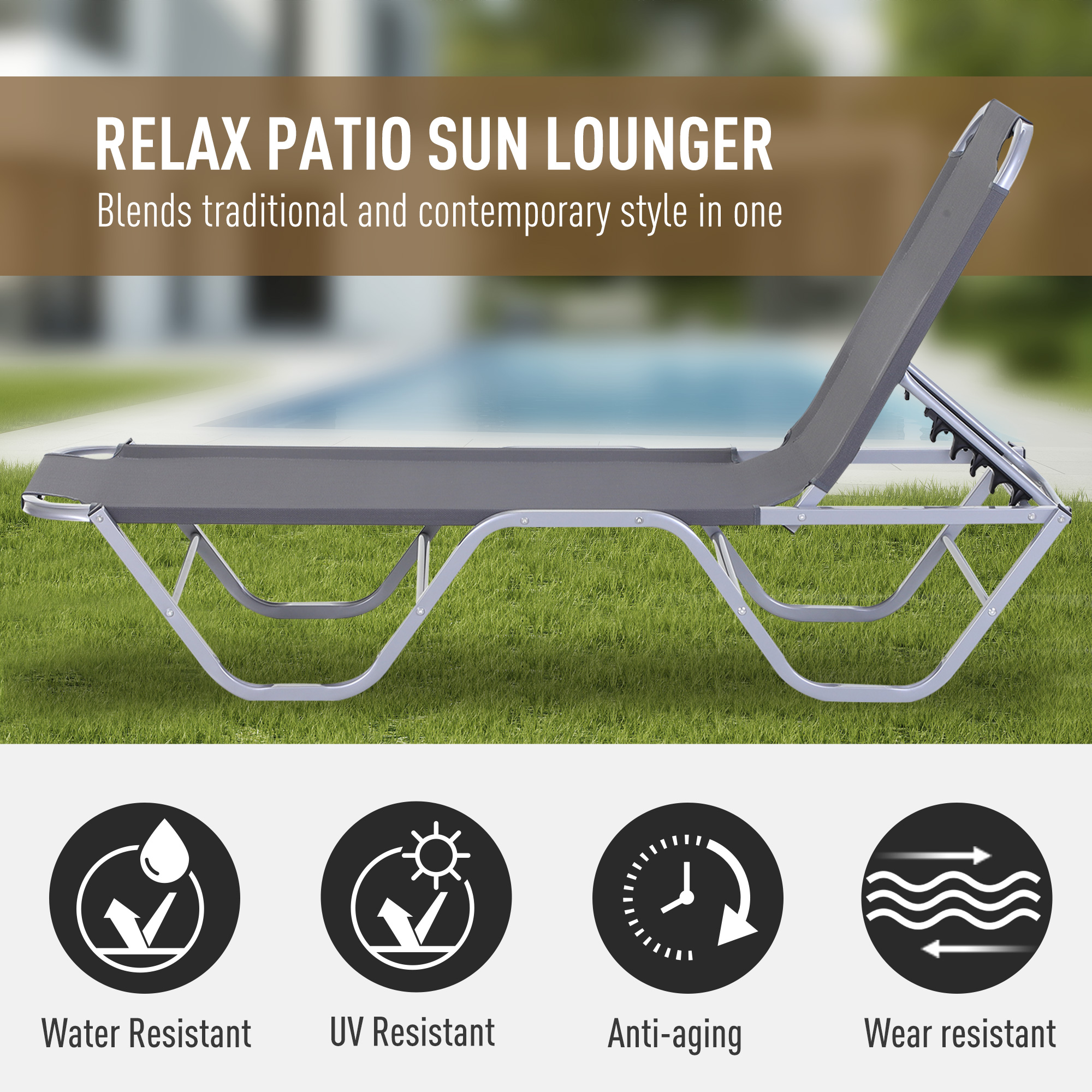 The simple and easy way to relax outdoors – grab this minimalistic Outsunny lounger. Using aluminium for a frame which is tough – powder coated for extra strength – you are able to relax with full support; the four stump legs keep you balanced. The back is adjustable to five different positions, you are able to lie back to an angle you find most comfortable. The fabric seat is soft and smooth on the skin, making your time under the sun as enjoyable as ever before.
