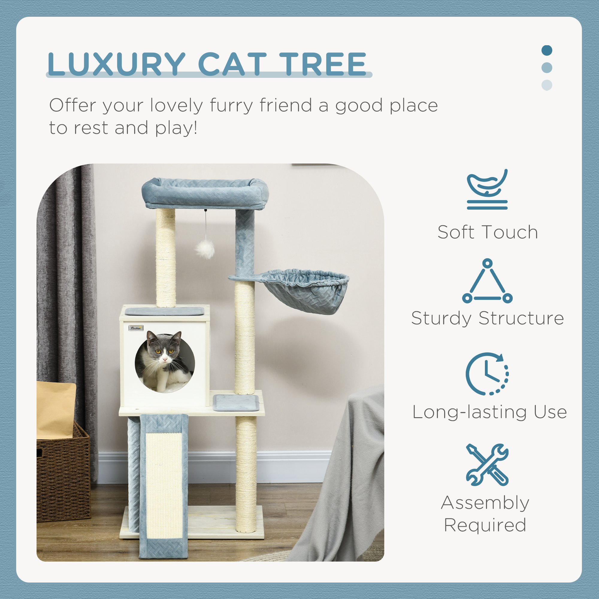 Transform your pet’s days for the better ?? choose this PawHut cat tree. The ultimate pet haven, it features a cat house, hammock and top bed, all covered in soft velvet, so pets can choose where to curl up and relax. When feeling playful, they’ll swipe at the hanging toy ball for enjoyment, whilst the scratching post and pad allow them to dig and sharpen their claws, deterring them from damaging furniture. Show your pet true love, giving them a world of fun and comfort.